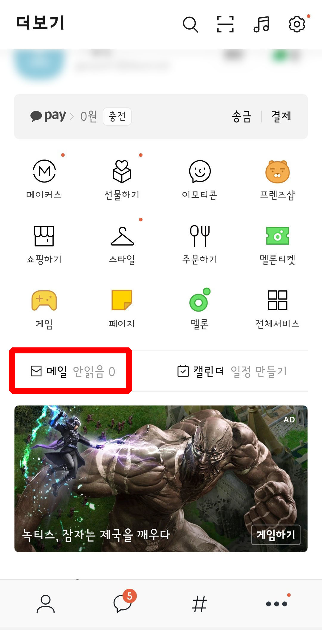 카카오톡 설정 창에 가시면 메일 아이콘이 있습니다.