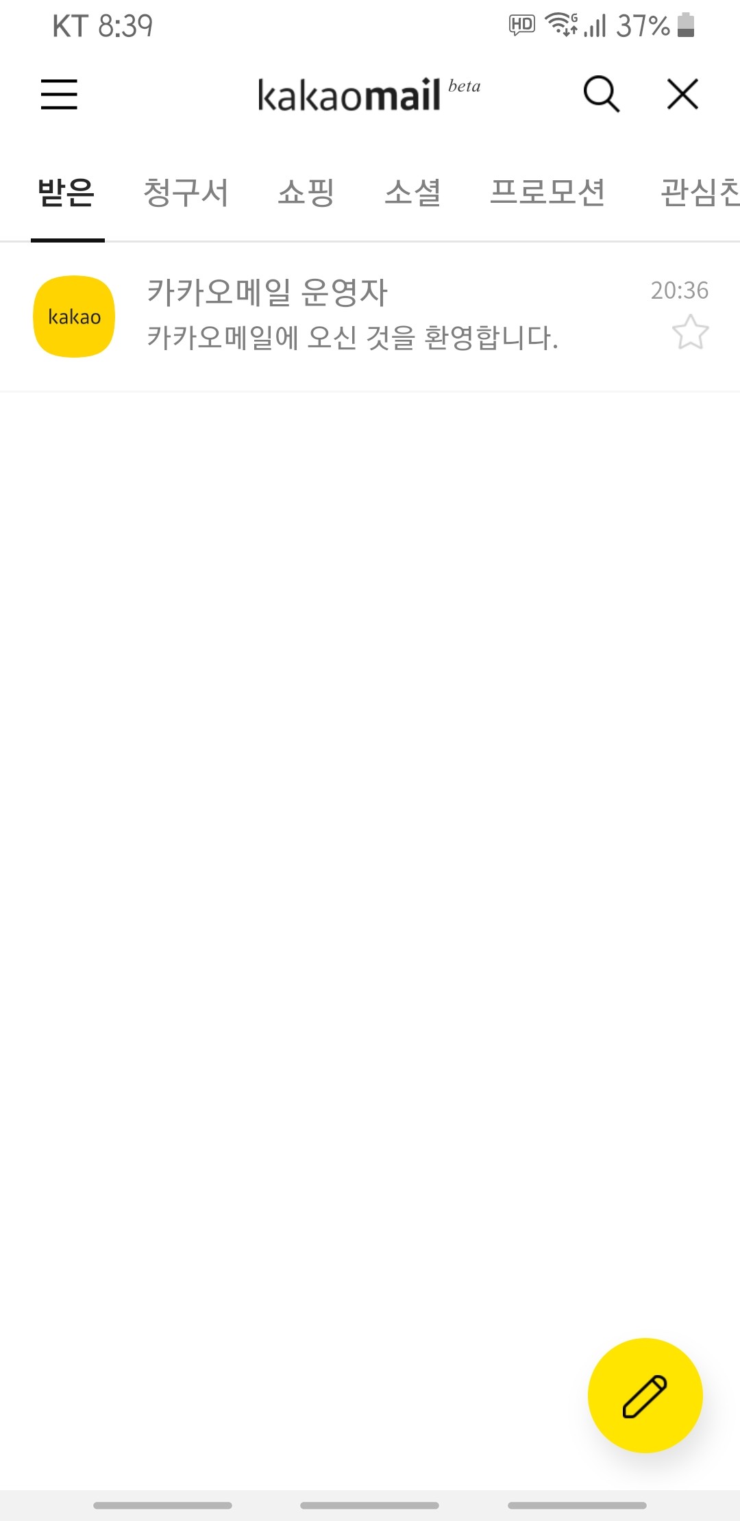 첫 메일로 운영자가 보내준 환영 메일이 와 있습니다.