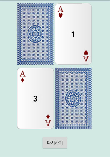 int [] imagesources = {R.drawable.aa, R.drawable.ab, R.drawable.ac, R.drawable.ad}; -> 카드의 앞면을