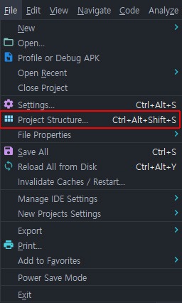 안드로이드 파일이 열린 창에서 다시 File > Project Structure.. 를 선택 후...