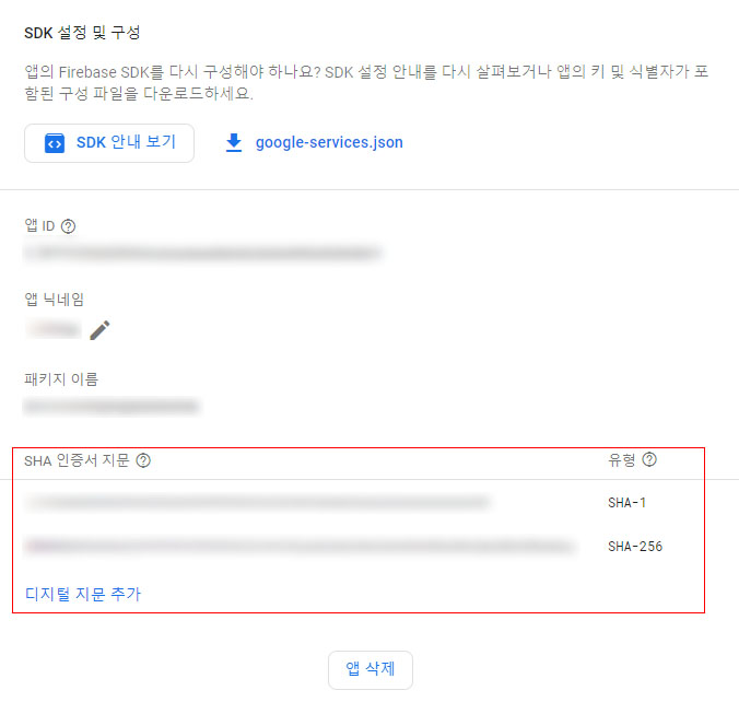 복사된 지문을 파이어베이스 지문란에 넣어 주시면 됩니다.