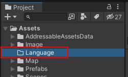 Project 창에서 "Language" 폴더를 하나 만들어 줍니다. (폴더의 이름은 다른 것으로 하셔도 됩니다.)