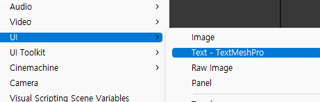 Hierarchy 창에서 UI의 Text를 하나 만들어 줍니다.