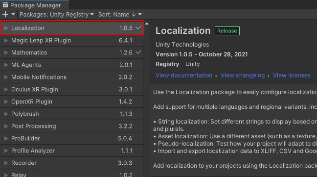 우선 Package Manager에서 Localization을 설치해 주세요.