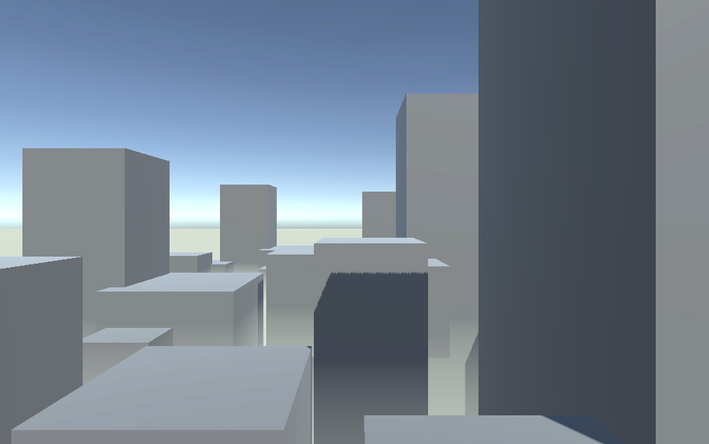 위 이미지처럼 지형이 있다고 가정하고 그 바탕에 안개로 사용될 Plane을 하나 만들어 줍니다.