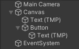 우선 Canvas에 테스트를 위한 Text UI와 Button을 하나씩 만들었습니다.