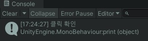 ** 혹 클릭 메시지 출력 안 되면 EventSystem 없을 수 있으니