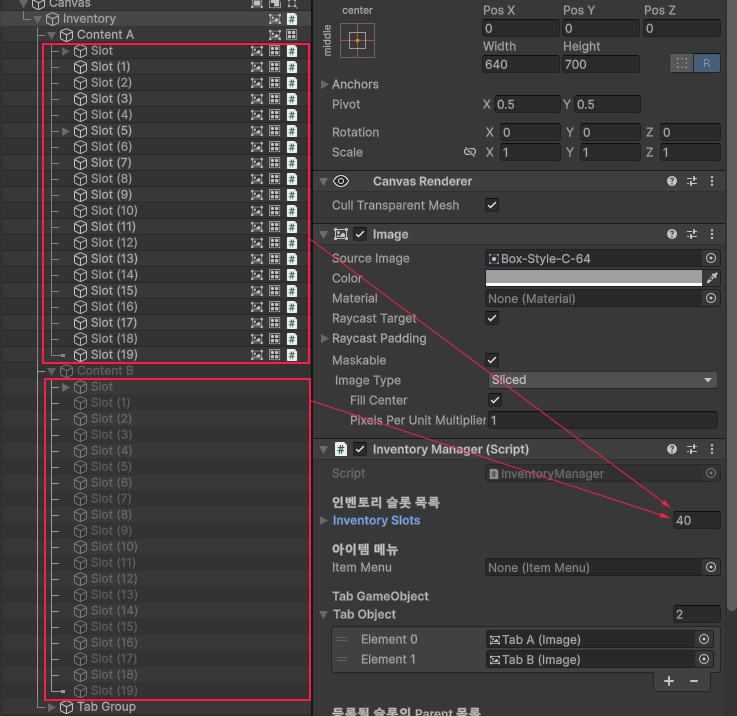 해당 Tab이 활성화되어 그곳에 아이템을 넣을 수 있는 기능까지 진행하도록 하겠습니다.