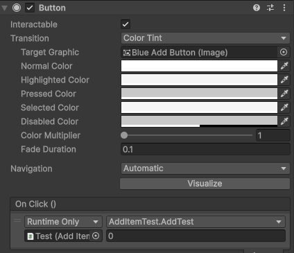 그리고 Test란 빈 오브젝트를 하나 만들고 그곳에 AddItemTest.cs를 넣어 주세요.