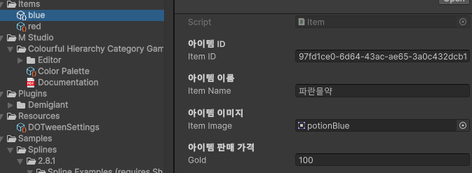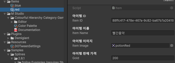 인벤토리에서 사용될 아이템을 만들어 보겠습니다.