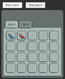 Tab을 클릭하여 A와 B Slot들을 표시하는 기능과 아이템을 드래그하여 다른 Tab위에 올려 두면